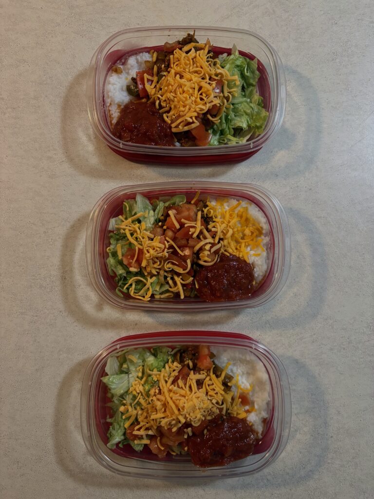 - Finish each bowl with shredded lettuce, salsa, cheese, and sour cream.